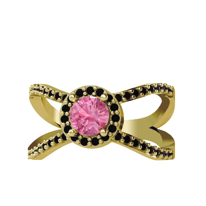 Pembe kuvars ve siyah zirkon 8 ayar altın yüzük