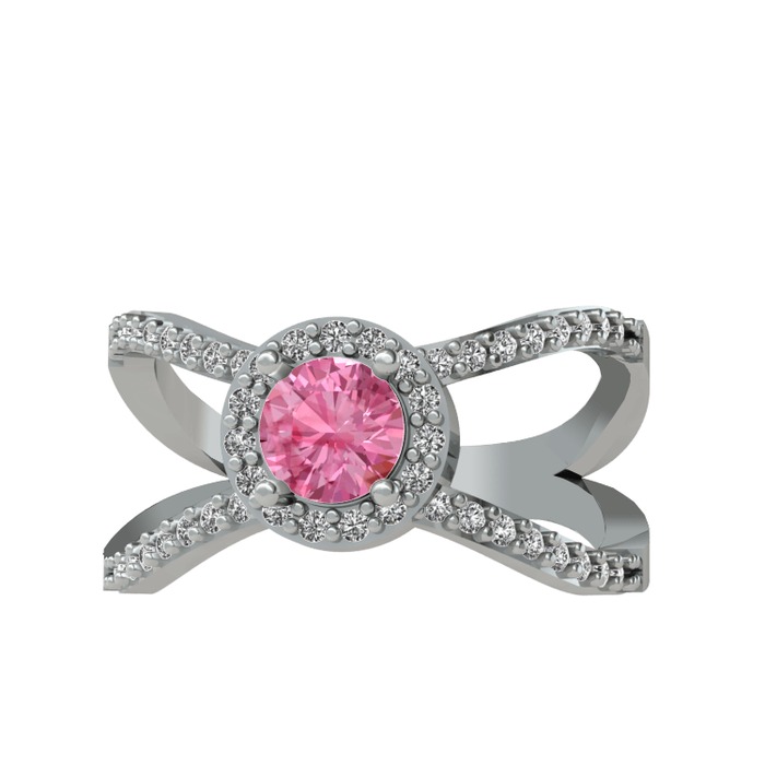 Pembe kuvars ve swarovski 8 ayar beyaz altın yüzük