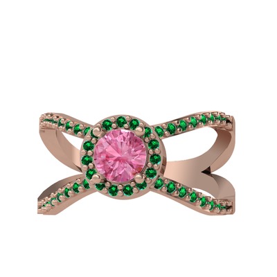 Pembe kuvars ve yeşil kuvars 14 ayar rose altın yüzük