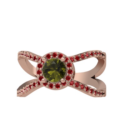 Peridot ve garnet 18 ayar rose altın yüzük