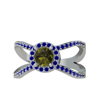 Peridot ve lab safir 8 ayar beyaz altın yüzük