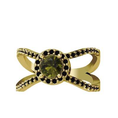 Peridot ve siyah zirkon 8 ayar altın yüzük