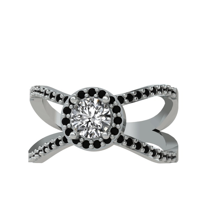 Pırlanta ve siyah zirkon 925 ayar gümüş yüzük (0.5 karat)