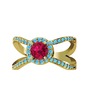 Rodolit garnet ve akuamarin 14 ayar altın yüzük