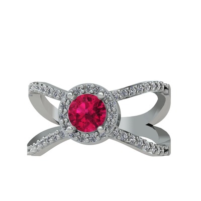 Rodolit garnet ve pırlanta 8 ayar beyaz altın yüzük (0.4136 karat)