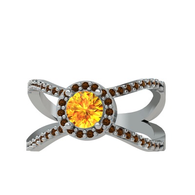 Sitrin ve dumanlı kuvars 18 ayar beyaz altın yüzük