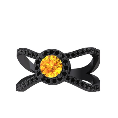 Sitrin ve siyah zirkon 925 ayar siyah rodyum kaplama gümüş yüzük