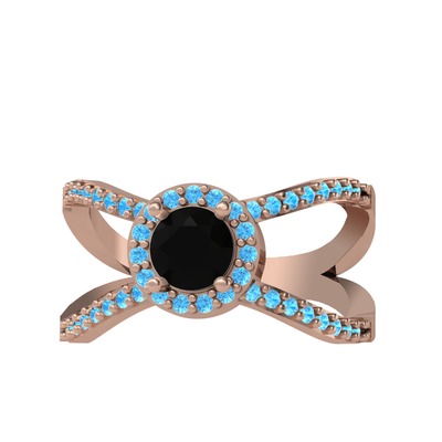 Siyah zirkon ve akuamarin 925 ayar rose altın kaplama gümüş yüzük