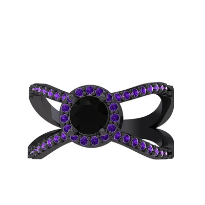 Siyah zirkon ve ametist 925 ayar siyah rodyum kaplama gümüş yüzük