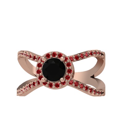 Siyah zirkon ve garnet 14 ayar rose altın yüzük
