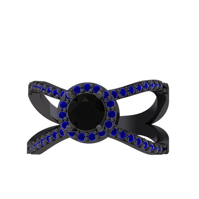 Siyah zirkon ve lab safir 925 ayar siyah rodyum kaplama gümüş yüzük