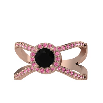 Siyah zirkon ve pembe kuvars 925 ayar rose altın kaplama gümüş yüzük