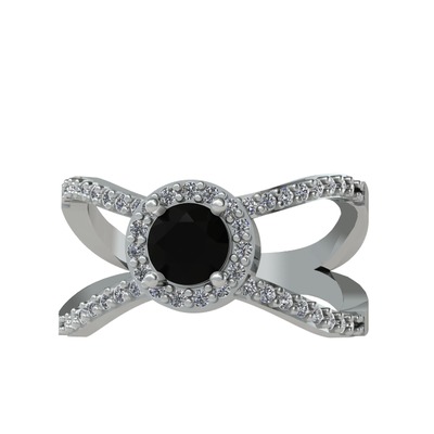 Siyah zirkon ve pırlanta 14 ayar beyaz altın yüzük (0.4136 karat)