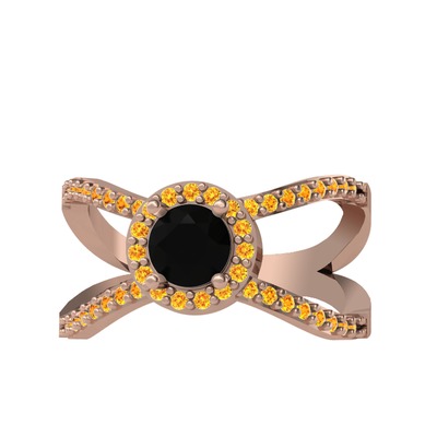 Siyah zirkon ve sitrin 8 ayar rose altın yüzük