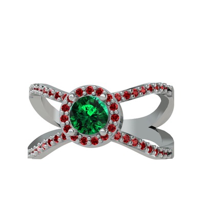 Yeşil kuvars ve garnet 14 ayar beyaz altın yüzük
