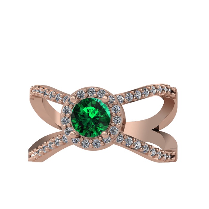 Yeşil kuvars ve pırlanta 18 ayar rose altın yüzük (0.4136 karat)