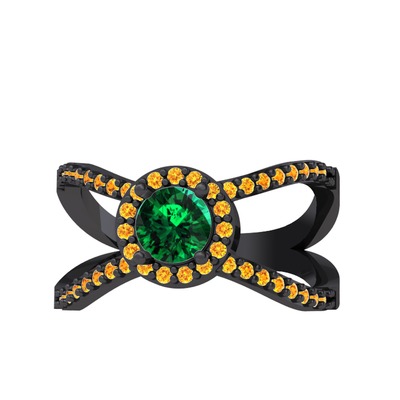 Yeşil kuvars ve sitrin 925 ayar siyah rodyum kaplama gümüş yüzük
