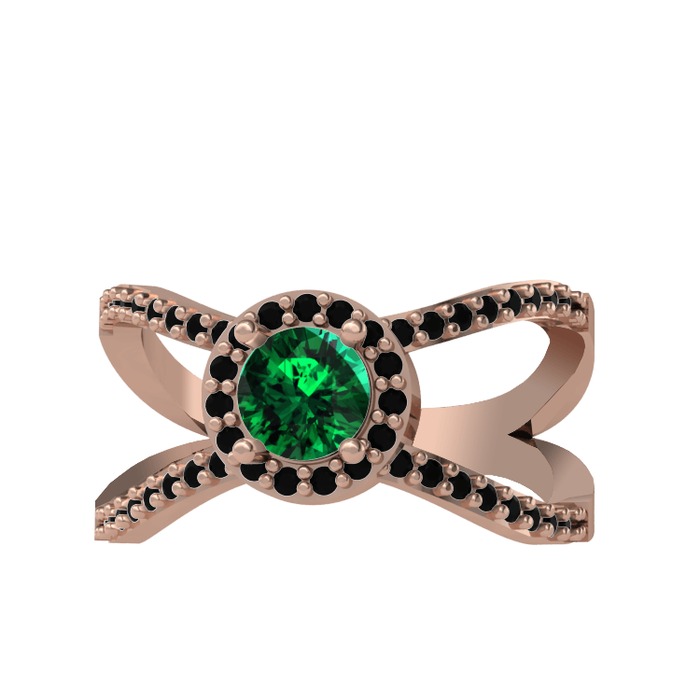 Yeşil kuvars ve siyah zirkon 18 ayar rose altın yüzük