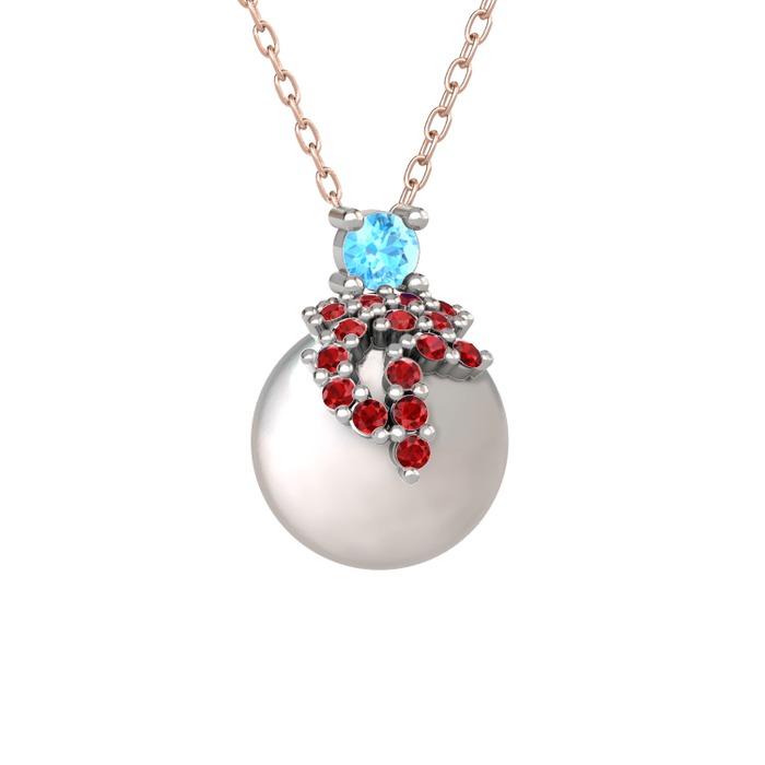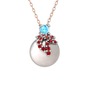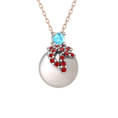 Akuamarin, garnet ve inci 18 ayar beyaz altın kolye (40 cm rose altın rolo zincir)
