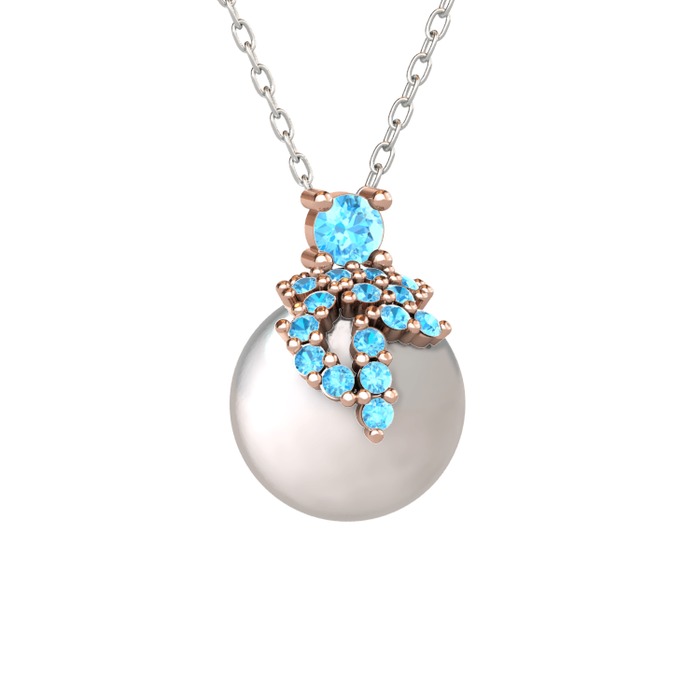 Akuamarin ve inci 8 ayar rose altın kolye (40 cm beyaz altın rolo zincir)
