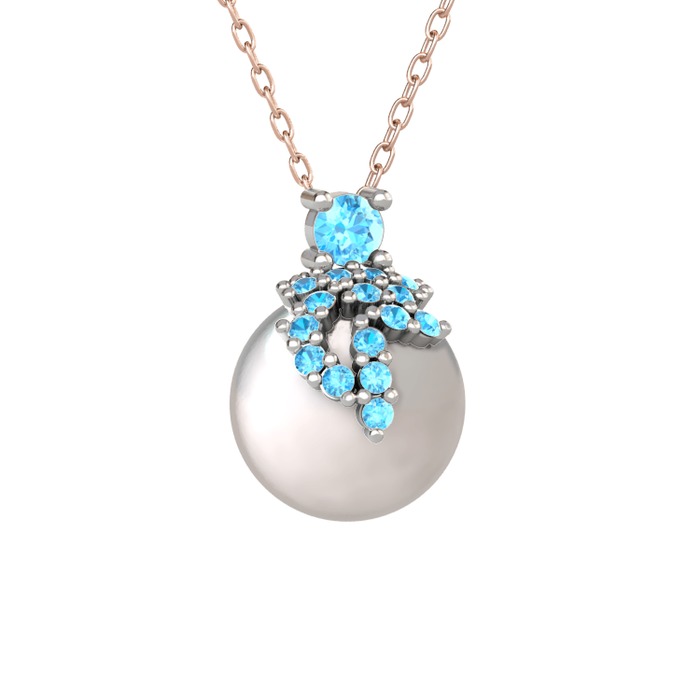 Akuamarin ve inci 925 ayar gümüş kolye (40 cm rose altın rolo zincir)