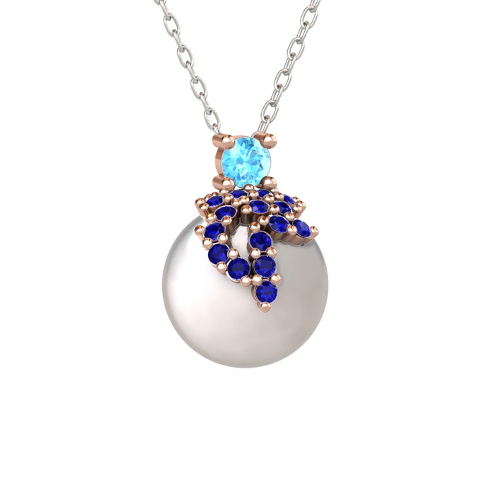Akuamarin, lab safir ve inci 18 ayar rose altın kolye (40 cm beyaz altın rolo zincir)