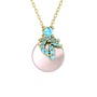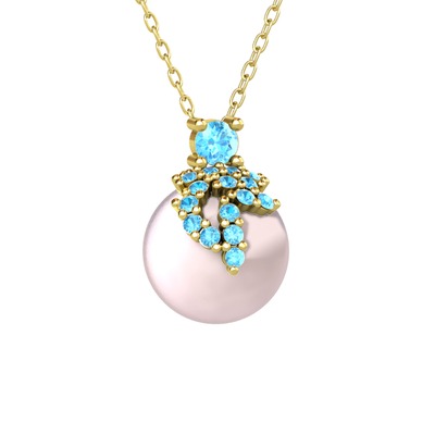Akuamarin ve pembe inci 925 ayar altın kaplama gümüş kolye (40 cm altın rolo zincir)