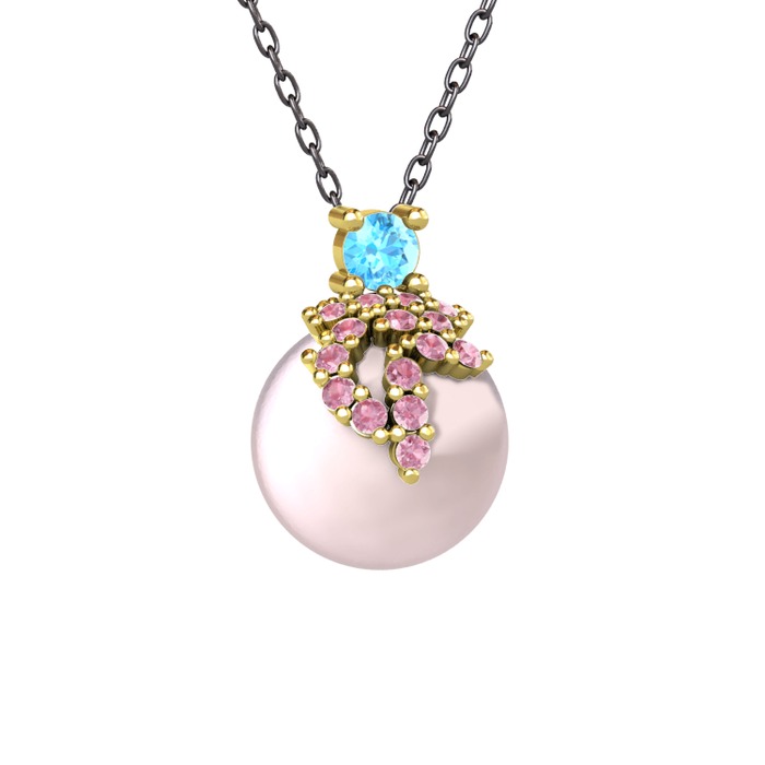 Akuamarin, pembe kuvars ve pembe inci 925 ayar altın kaplama gümüş kolye (40 cm gümüş rolo zincir)