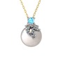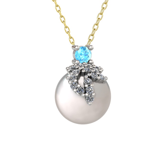 Akuamarin, pırlanta ve inci 18 ayar beyaz altın kolye (0.176 karat, 40 cm altın rolo zincir)