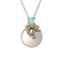 Akuamarin, pırlanta ve inci 8 ayar altın kolye (0.176 karat, 40 cm rose altın rolo zincir)