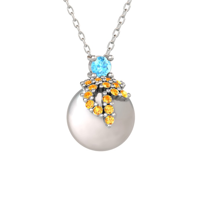Akuamarin, sitrin ve inci 925 ayar gümüş kolye (40 cm beyaz altın rolo zincir)