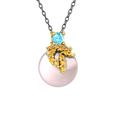 Akuamarin, sitrin ve pembe inci 925 ayar altın kaplama gümüş kolye (40 cm gümüş rolo zincir)