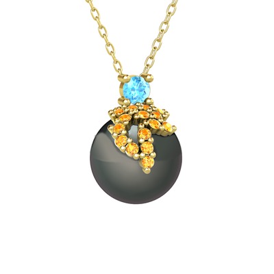 Akuamarin, sitrin ve siyah inci 8 ayar altın kolye (40 cm gümüş rolo zincir)