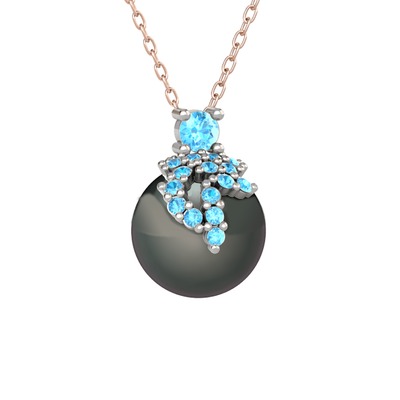 Akuamarin ve siyah inci 8 ayar beyaz altın kolye (40 cm rose altın rolo zincir)