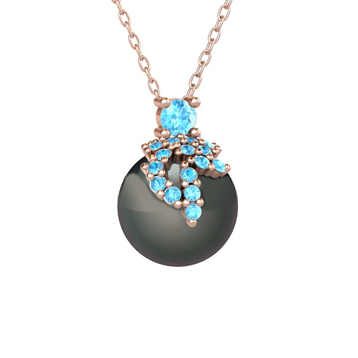 Akuamarin ve siyah inci 8 ayar rose altın kolye (40 cm gümüş rolo zincir)