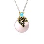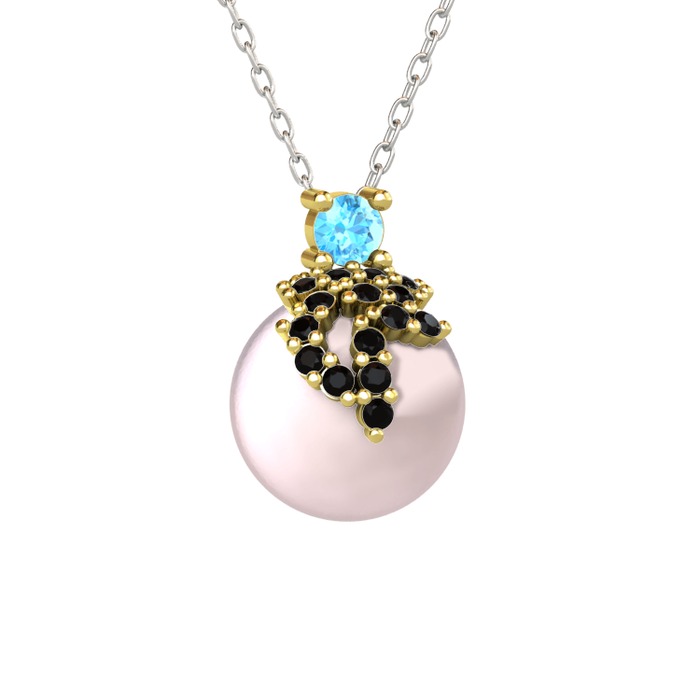 Akuamarin, siyah zirkon ve pembe inci 14 ayar altın kolye (40 cm gümüş rolo zincir)