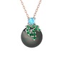 Akuamarin, yeşil kuvars ve siyah inci 8 ayar beyaz altın kolye (40 cm rose altın rolo zincir)