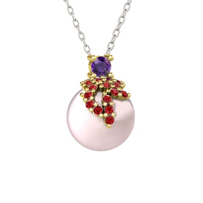 Ametist, garnet ve pembe inci 8 ayar altın kolye (40 cm beyaz altın rolo zincir)