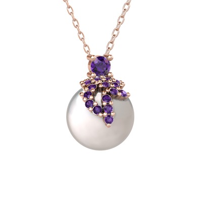 Ametist ve inci 18 ayar rose altın kolye (40 cm rose altın rolo zincir)