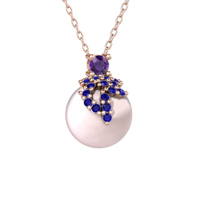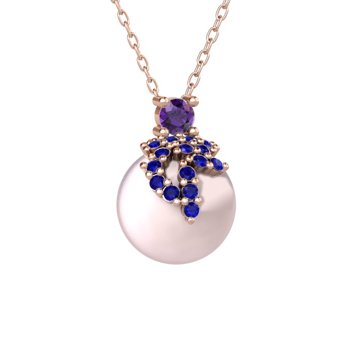 Ametist, lab safir ve pembe inci 14 ayar rose altın kolye (40 cm rose altın rolo zincir)