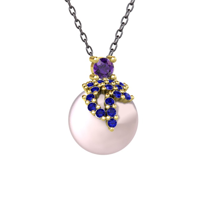 Ametist, lab safir ve pembe inci 8 ayar altın kolye (40 cm gümüş rolo zincir)