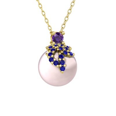 Ametist, lab safir ve pembe inci 925 ayar altın kaplama gümüş kolye (40 cm altın rolo zincir)