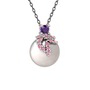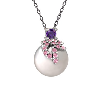 Ametist, pembe kuvars ve inci 925 ayar gümüş kolye (40 cm gümüş rolo zincir)