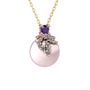 Ametist, pırlanta ve pembe inci 14 ayar rose altın kolye (0.176 karat, 40 cm altın rolo zincir)