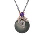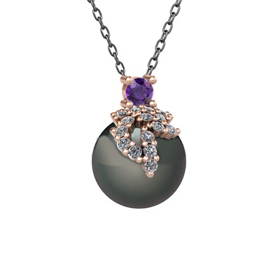 Ametist, pırlanta ve siyah inci 18 ayar rose altın kolye (0.176 karat, 40 cm gümüş rolo zincir)