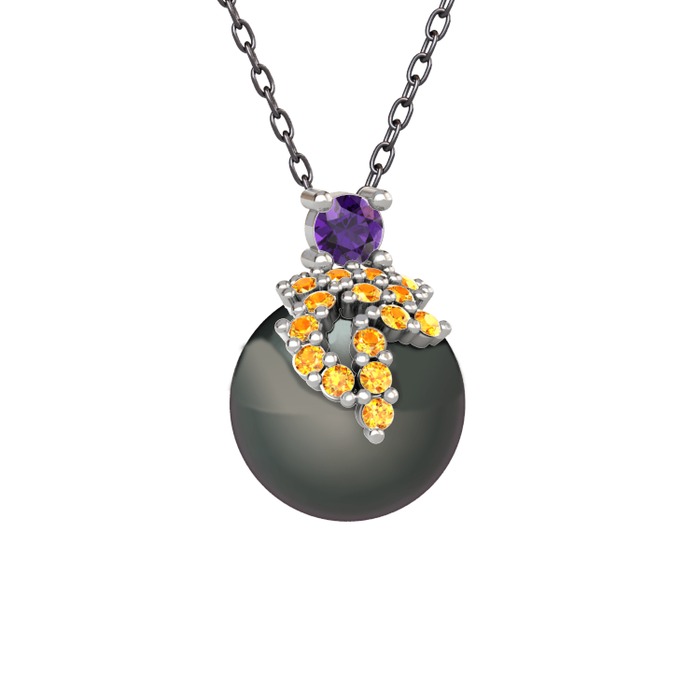 Ametist, sitrin ve siyah inci 925 ayar gümüş kolye (40 cm gümüş rolo zincir)
