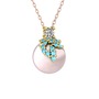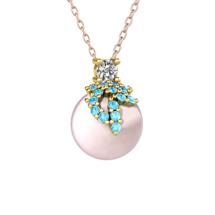 Beyaz zirkon, akuamarin ve pembe inci 14 ayar altın kolye (40 cm rose altın rolo zincir)