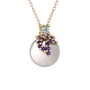 Beyaz zirkon, ametist ve inci 14 ayar altın kolye (40 cm rose altın rolo zincir)