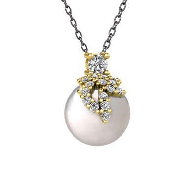 Beyaz zirkon ve inci 18 ayar altın kolye (40 cm gümüş rolo zincir)