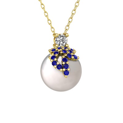 Beyaz zirkon, lab safir ve inci 925 ayar altın kaplama gümüş kolye (40 cm altın rolo zincir)